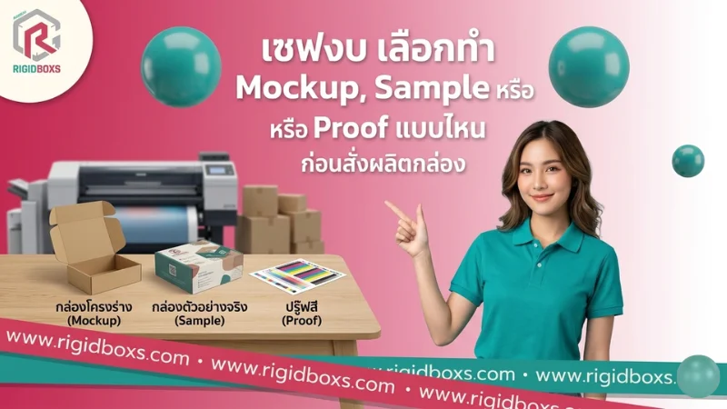อยากได้กล่องสวย พรีเมียม ห้ามพลาด? รู้จักความต่างของทำ Mockup, Sample และ Proof พร้อมวิธีเลือกทำตัวอย่างก่อนผลิตจริง เพื่อเช็กทรง ขนาด และสีให้ชัวร์ ประหยัดเวลาและเซฟงบ